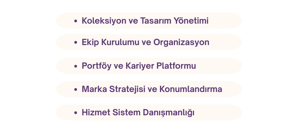 - Koleksiyon ve Tasarım Yönetimi: Moda ve tekstil sektöründe oluşturduğumuz profesyonel ekiplerlerle, üreticilerin vizyonlarına uygun detaylı çalışmalar yaparak sürdürülebilir ve yenilikçi koleksiyon desteği sunuyoruz.